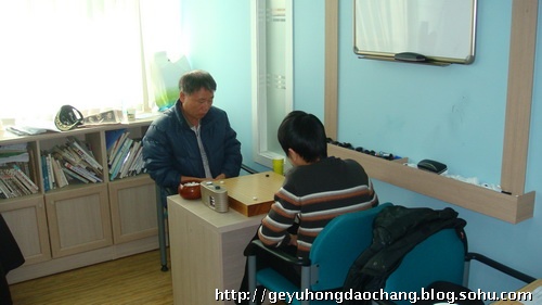 11月18日,星期三,今天去参观敬仰已久的权甲龙道场。一大早按着岳亮老师给的地址很顺利就找到了地方。道场不是很大,一间权甲龙老师的办公室,一间 院生室,一间看起来像是做围棋普及的教室,还有一间大概有四五十平米的最大房间是权道场的主要训练室。在办公室见到了传说中的权甲龙老师。权老师个头不高 但非常随和、非常精神!难以想像,这是一位在道场和他的学生们一起生活了16年之久而没回家睡过一次的老人!