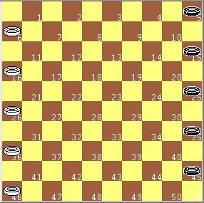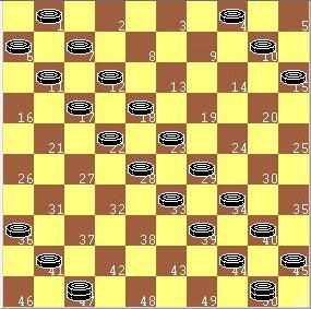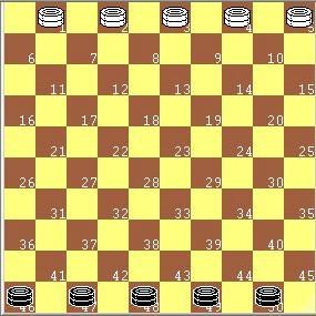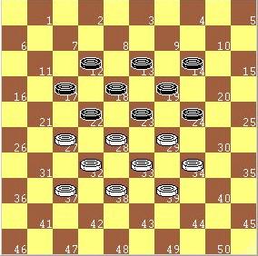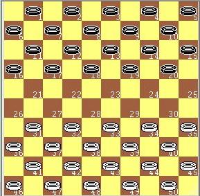 2、黑兵摆在1至20的棋位上,白兵摆在31至50的棋位
